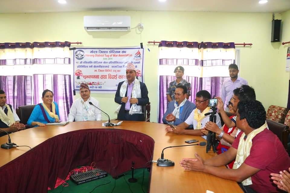 सुनसरी जिल्ला डोरीतान संघको संयोजन तथा नेपाल डोरीतान संघको नेतृत्वमा थाईल्याण्डमा यहि सेप्टेम्वर 14 र 15 मा हुन लागेको 14 औं एसियाली डोरीतान प्रतियोगितामा भाग लिन जाने नेपाली टोलीलाई मोरंग जिल्ला डोरीतान संघले शुभकामना तथा बिदाई कार्यक्रम मार्फत बिदाई गरेको छ । कार्यक्रमका प्रमुख अतिथि प्रदेश १ का सामाजिक बिकास मन्त्री मा. जीवन घिमिरे ज्यूले टिमलाई नेपालको झण्डा हस्तान्तरण गर्दै शुभकामना तथा हौसला प्रदान गर्नु भएको थियो ।