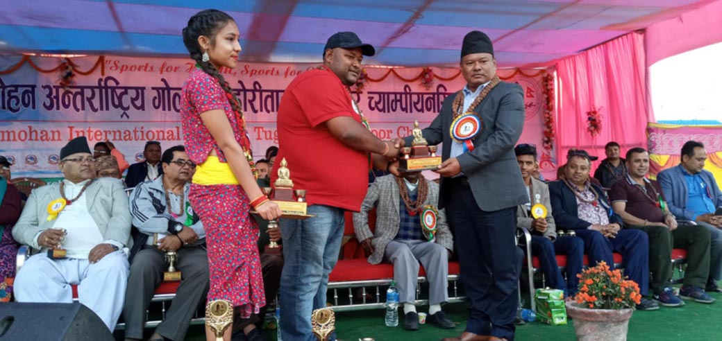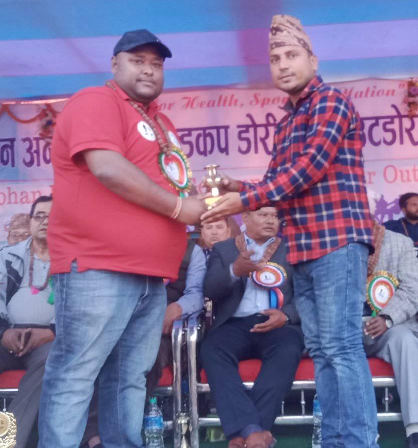 त्यसैगरी दोस्रो मनमोहन अन्तर्रा्ष्ट्रिय गोल्डकप डोरीतान आउटडोर च्याम्पीयनसिप प्रतियोगिताको पुरस्कार वितरण कार्यक्रमको प्रमुख अतिथिमा रहनु भएका पुर्व सामान्य तथा प्रशासन मंन्त्रि माननिय लालबाबु पण्डितले पनि सम्पुर्ण खेल प्रेमिहरुलाई शुभकामना दिंदै दुहबी नगरपालिका खेल क्षेत्रमा एक छुटै पहिचान बनाएकोमा नगरबासीहरुलाई शुभकामना दिनुभएको छ । साथै डोरीतान खेललाई आफुले गर्न सक्ने सहयोगको वचा गरेको आयोजकले जानकारी दिएको छ ।