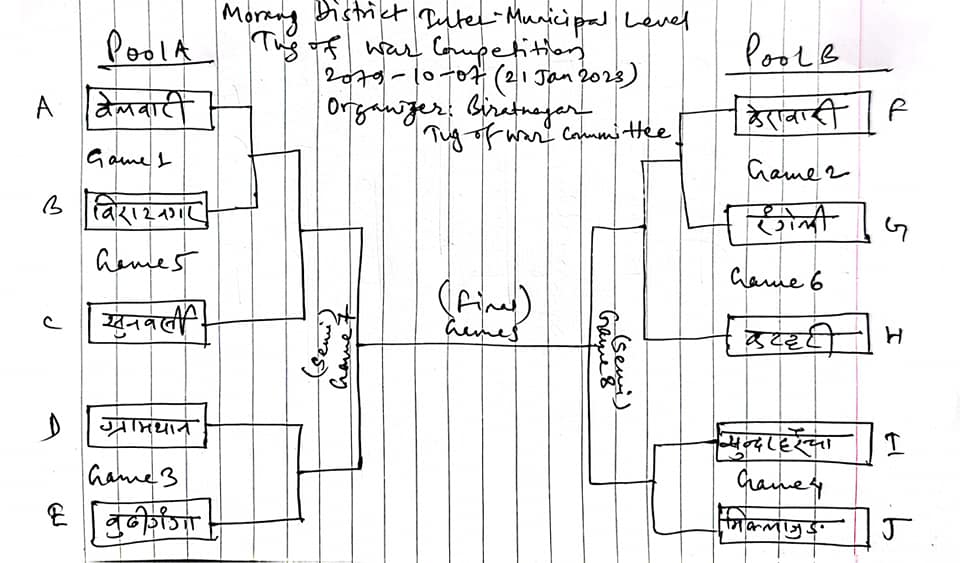 2079-10-07 बिराटनगर महानगरपालिका डोरीतान समितिले दोस्रो मोरङ जिल्ला स्तरीय अन्तरपालिका डोरीतान प्रतियोगिता आयोजना गरेको छ ।